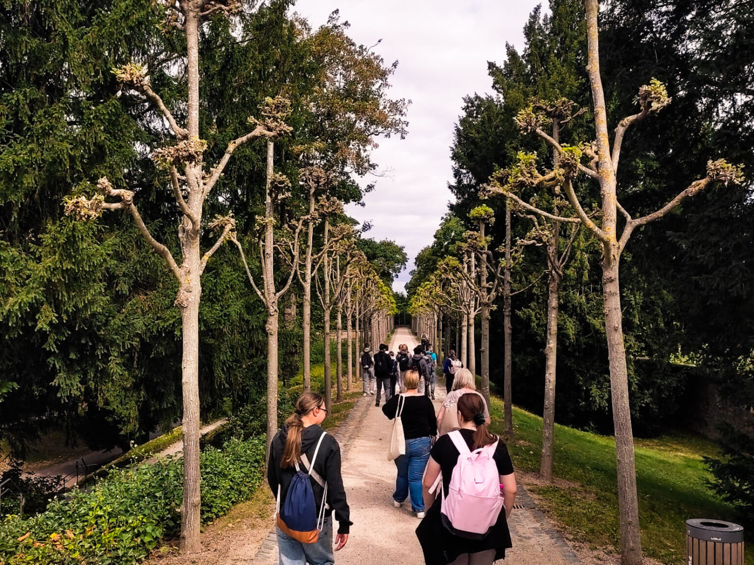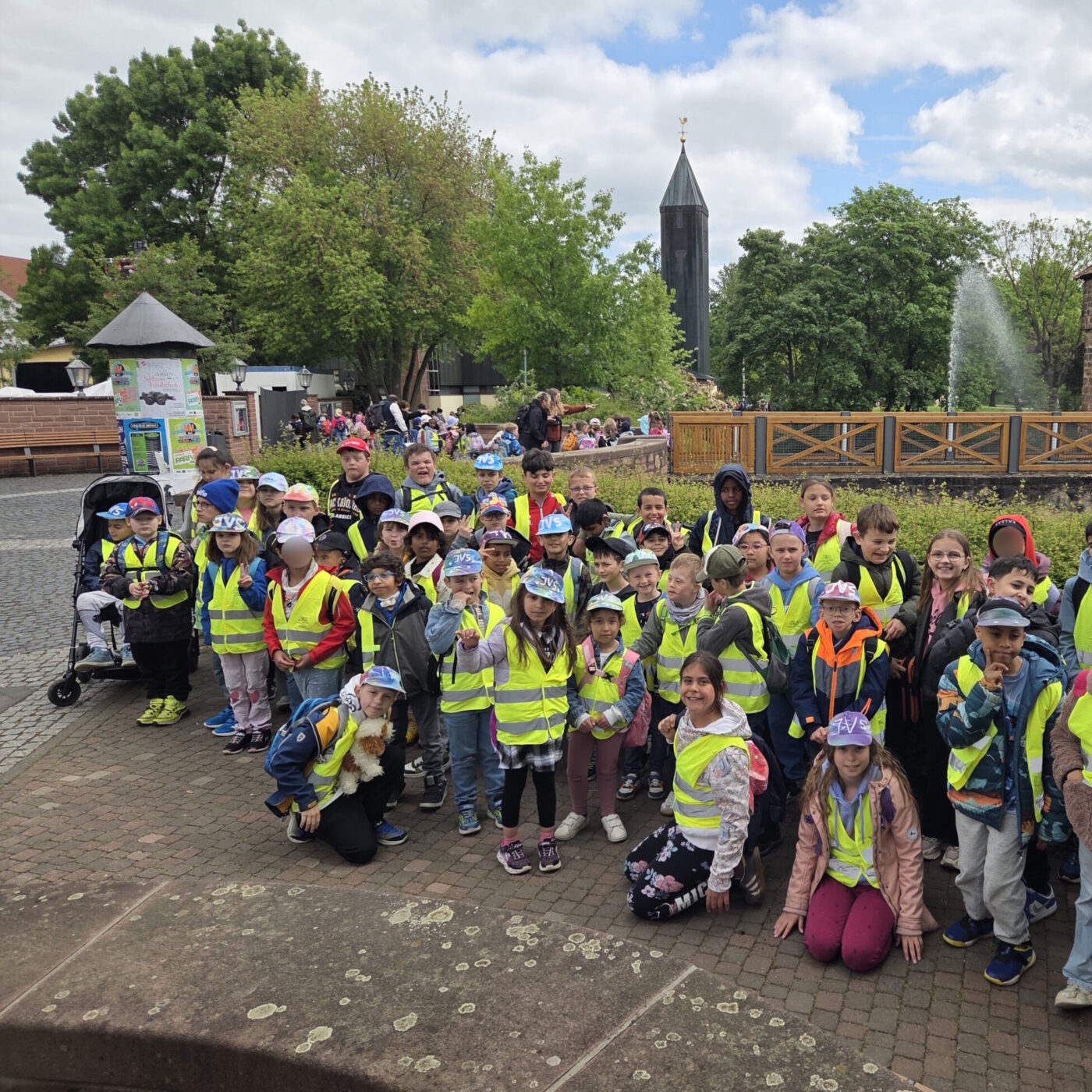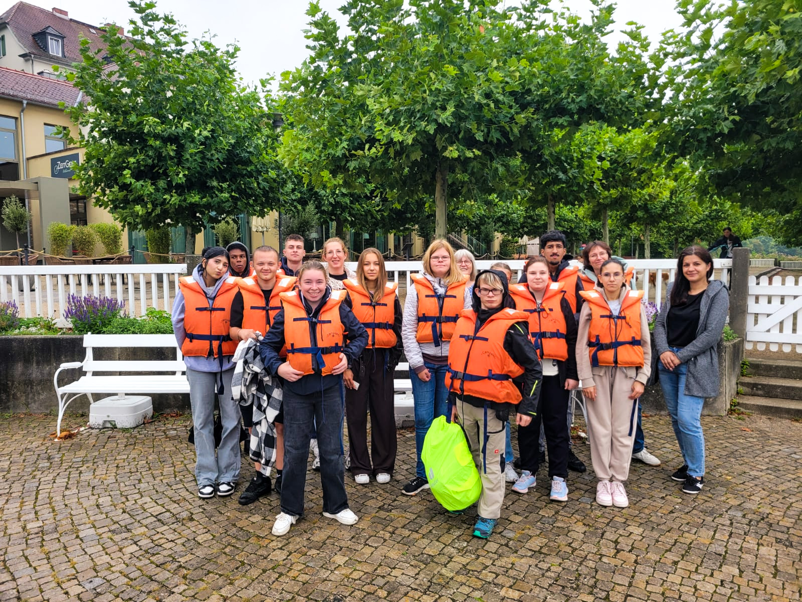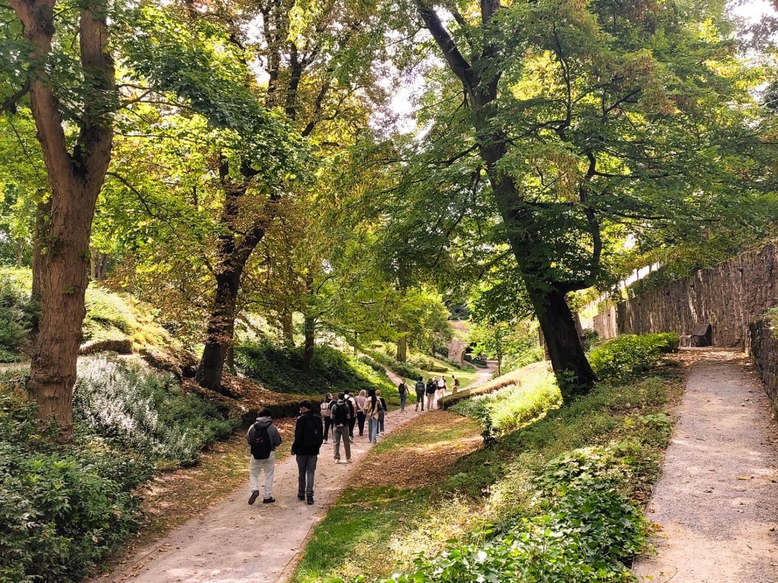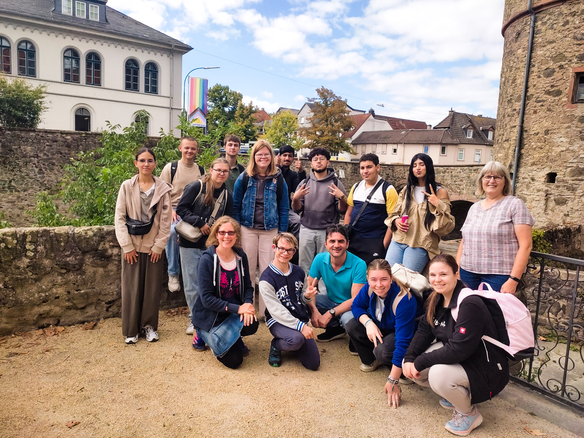 In der ersten Woche lag der Schwerpunkt auf dem gegenseitigen Kennenlernen sowie dem Erkunden der Schule. Dafür gab es verschiedene Spiele, Aktionen und Unternehmungen, bei denen sich Lehrerkräfte und Schülerinnen und Schüler sowie die Jugendlichen untereinander besser kennen lernen konnten: unter anderem eine Schulrallye, ein gemeinsames Frühstück sowie ein Ausflug durch Friedberg. Da viele Jugendliche weiter weg wohnen und täglich mit dem Bus oder öffentlichen Verkehrsmitteln zur Schule fahren, verbringen sie oft nur kurz oder keine Zeit in Friedberg und wissen wenig von der Stadt. Das wollten wir ändern: Am Freitag, 22. August 2025 zogen die Klassen BzB und BFS gemeinsam los, um Friedberg zu erkunden. Unser Weg führte durch die Kaiserstraße zur Stadtkirche. Anschließend steuerten wir auf die Friedberger Burg zu. Bei wunderschönem Wetter genossen wir die Atmosphäre im schönen Burggarten („Lass mal da lang gehen, das sieht richtig schön aus.“) sowie die gute Aussicht und staunten über die Größe der Burganlage.