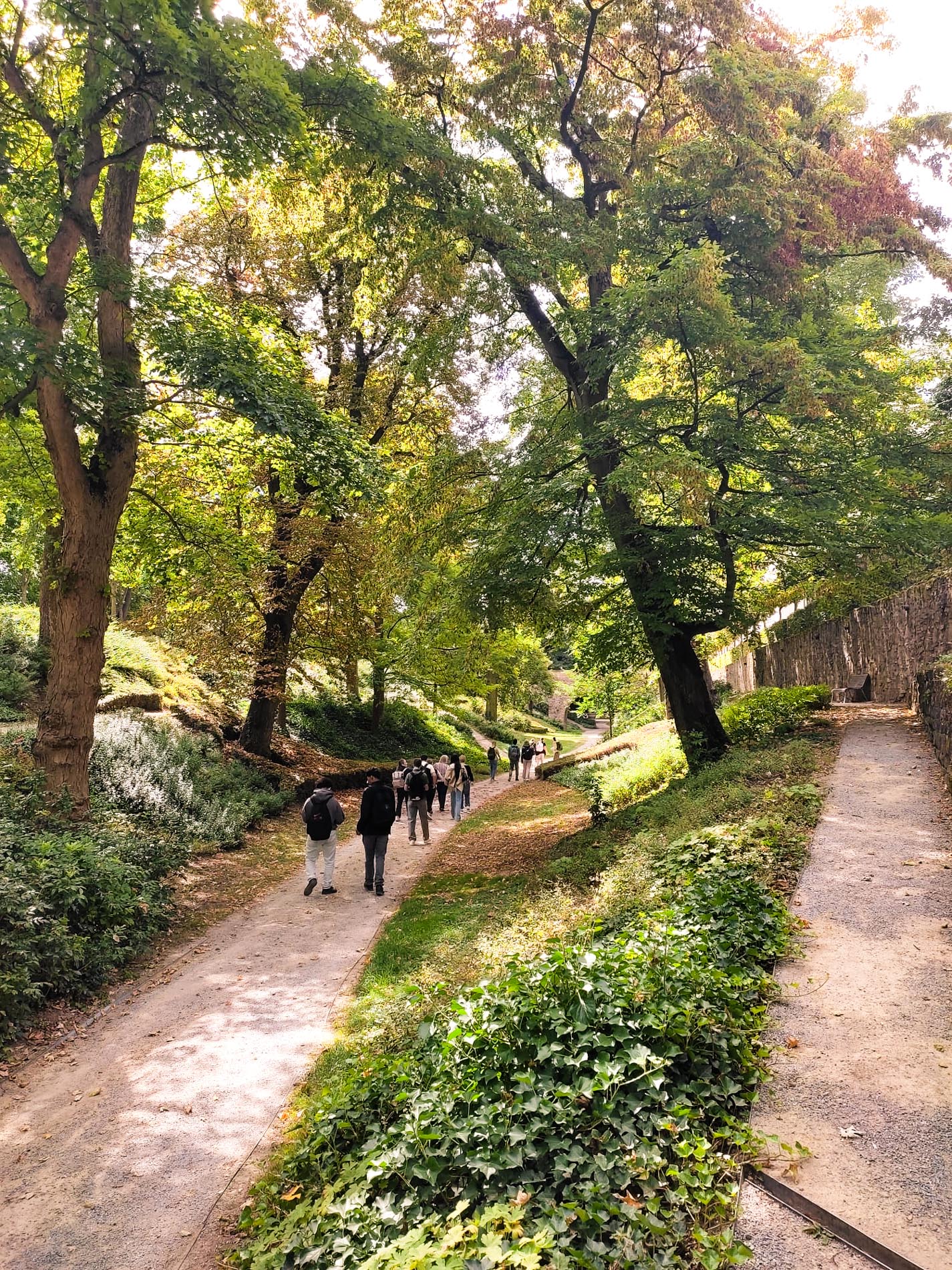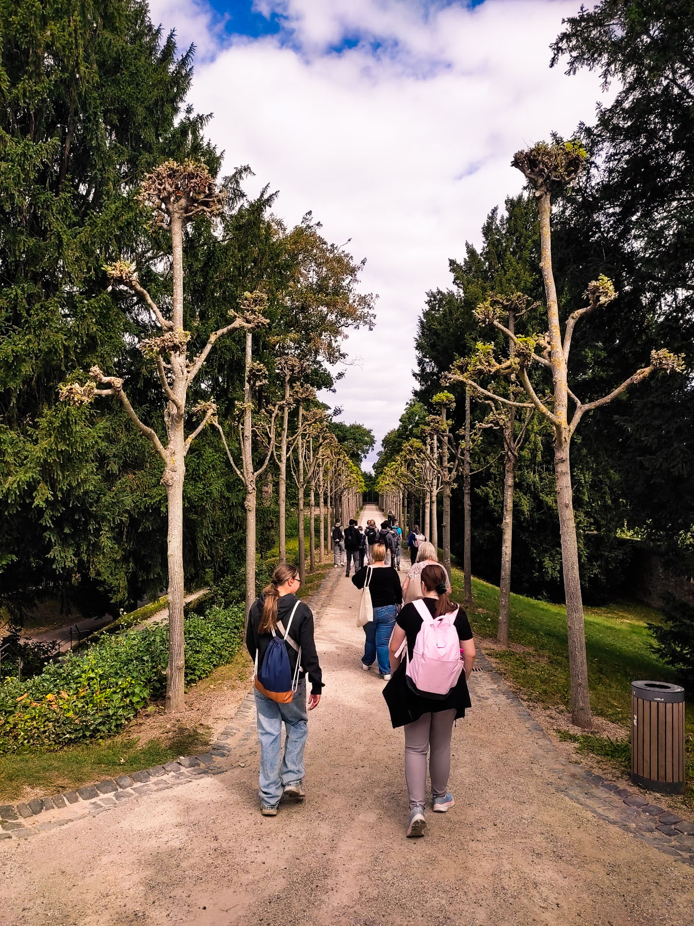 In der ersten Woche lag der Schwerpunkt auf dem gegenseitigen Kennenlernen sowie dem Erkunden der Schule. Dafür gab es verschiedene Spiele, Aktionen und Unternehmungen, bei denen sich Lehrerkräfte und Schülerinnen und Schüler sowie die Jugendlichen untereinander besser kennen lernen konnten: unter anderem eine Schulrallye, ein gemeinsames Frühstück sowie ein Ausflug durch Friedberg. Da viele Jugendliche weiter weg wohnen und täglich mit dem Bus oder öffentlichen Verkehrsmitteln zur Schule fahren, verbringen sie oft nur kurz oder keine Zeit in Friedberg und wissen wenig von der Stadt. Das wollten wir ändern: Am Freitag, 22. August 2025 zogen die Klassen BzB und BFS gemeinsam los, um Friedberg zu erkunden. Unser Weg führte durch die Kaiserstraße zur Stadtkirche. Anschließend steuerten wir auf die Friedberger Burg zu. Bei wunderschönem Wetter genossen wir die Atmosphäre im schönen Burggarten („Lass mal da lang gehen, das sieht richtig schön aus.“) sowie die gute Aussicht und staunten über die Größe der Burganlage.