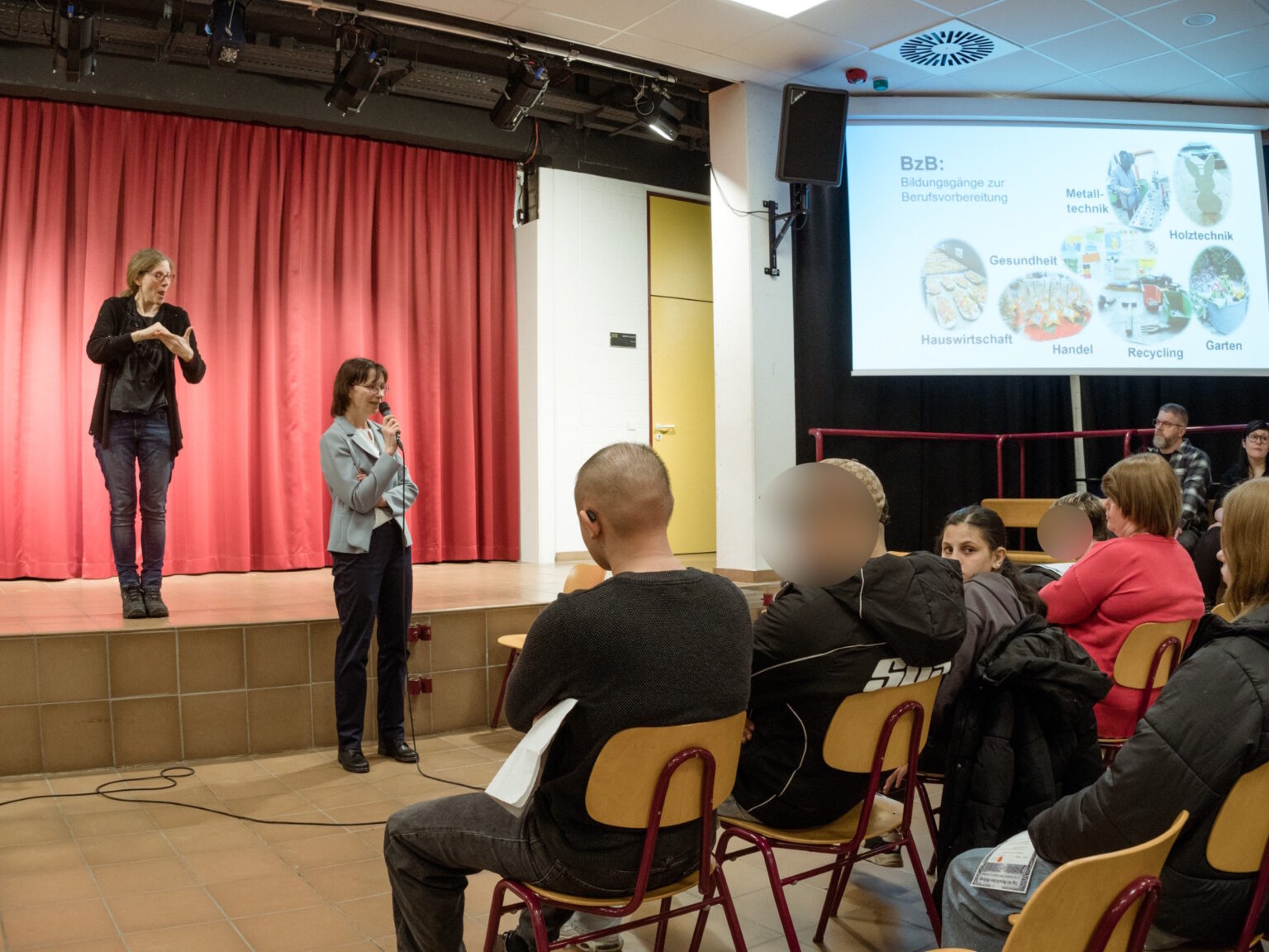Die Leiterin des Schülerheims, Frau Abel, stellte das angeschlossene Wohnheim vor und informierte über die Wohn- und Betreuungsmöglichkeiten für auswärtige Lernende. Frau Tiede, Konrektorin, präsentierte zudem die Arbeit der Pädagogischen Audiologie und gab Einblicke in deren Beratungs- und Förderangebote.