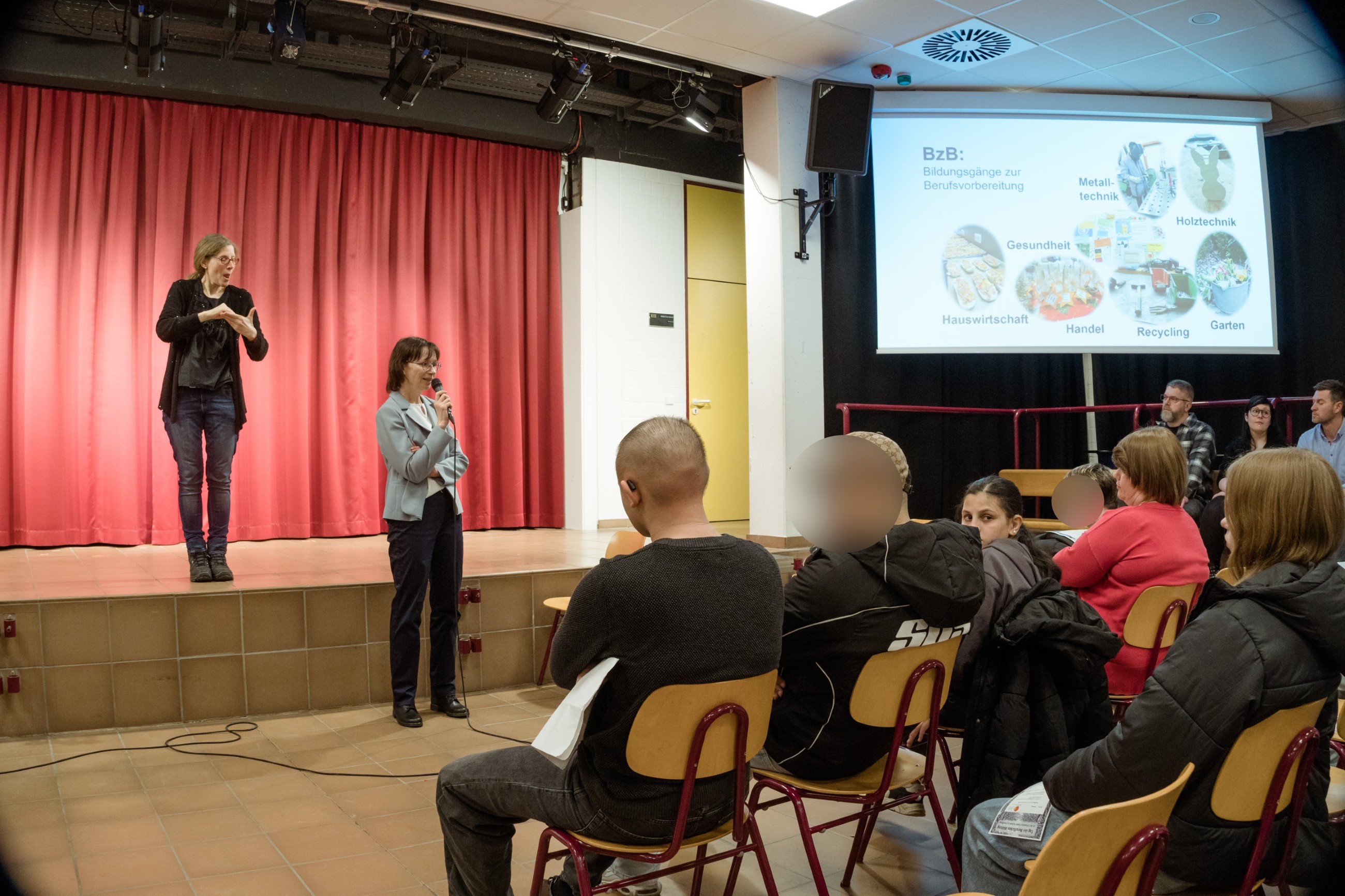 Besonders großes Interesse fanden die Schnupperunterricht-Angebote in den verschiedenen Bereichen der beruflichen Ausbildung. In der Holzwerkstatt, im Bereich Hauswirtschaft, im Garten- und Landschaftsbereich, in der Metallwerkstatt, der Recyclingwerkstatt, im Bereich Verkauf und Handel sowie im Bereich Gesundheit erhielten die Besucherinnen und Besucher praxisnahe Einblicke in die Unterrichtsarbeit. Viele nutzten die Gelegenheit, mit Lehrkräften ins Gespräch zu kommen und selbst kleine praktische Tätigkeiten auszuprobieren.