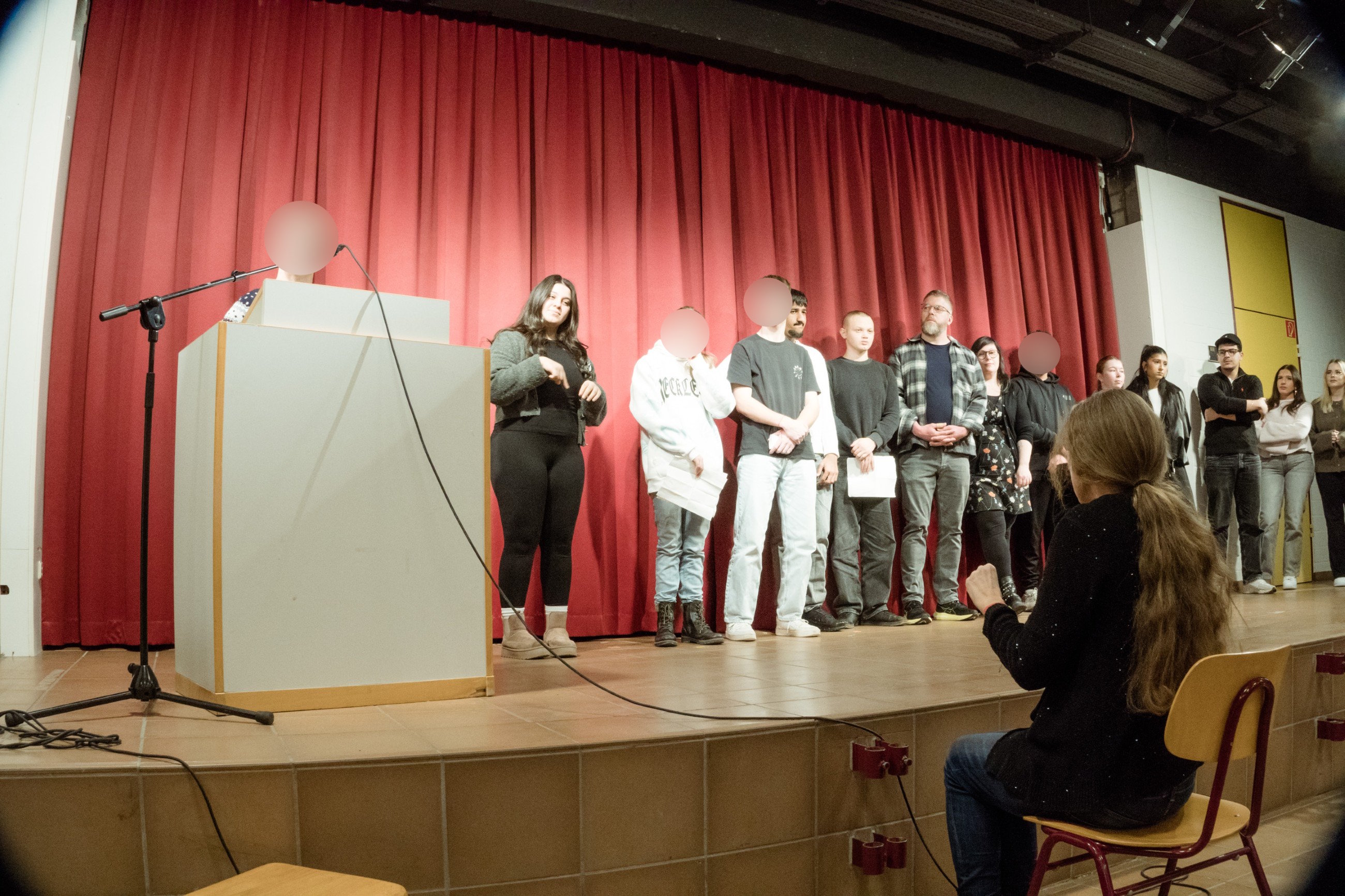 Insgesamt 6 Schülerinnen und Schüler, auch aus den höheren Klassenstufen, traten gegeneinander an. Manche lasen aus Jugendbüchern vor, andere trugen ein Märchen in Deutscher Gebärdensprache vor. Dabei übersetzte eine Gebärdensprach-Dolmetscherin.